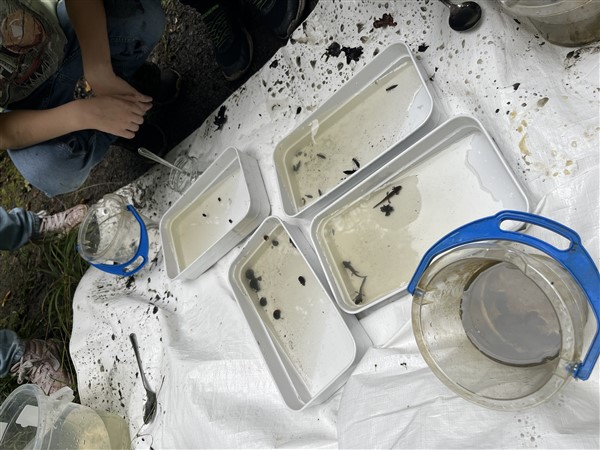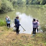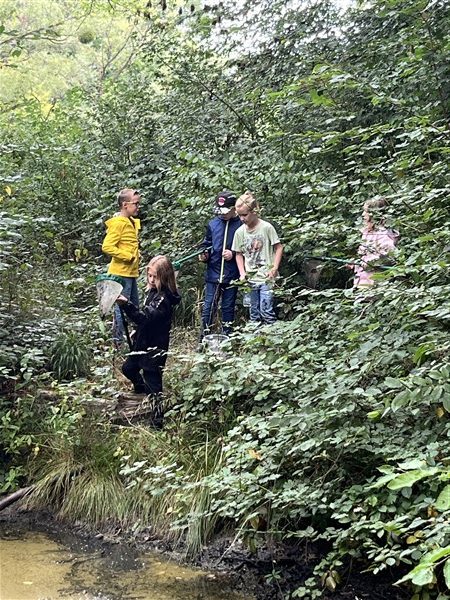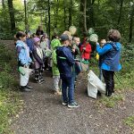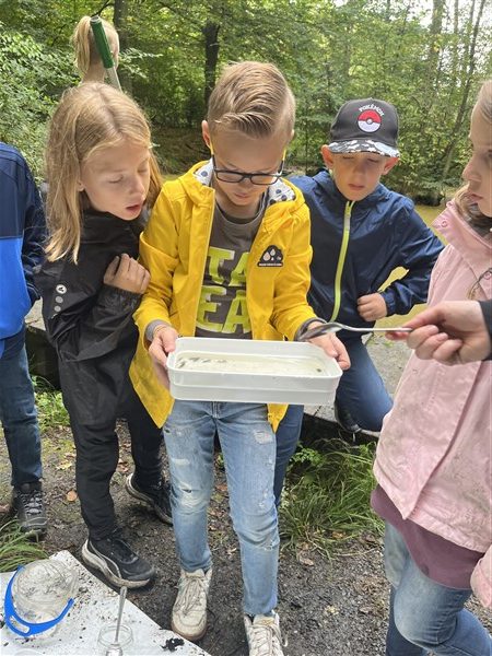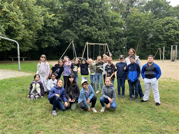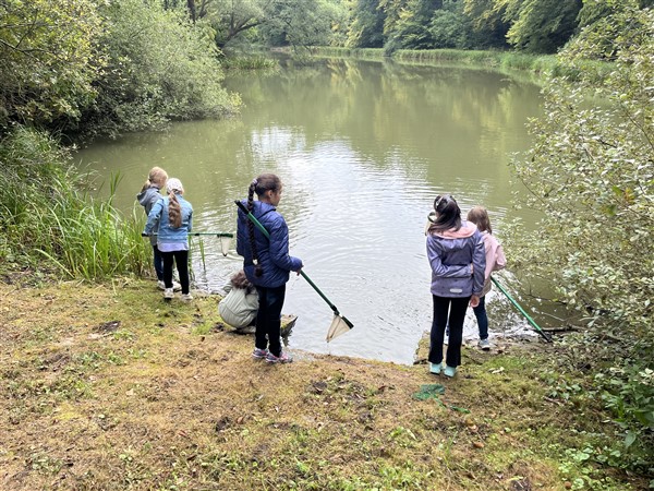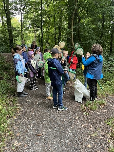 Am Freitag, den 29.08.2025, ging es für die Klasse 4b wieder einmal ins NEST – die Naturerkundungsstation Wolfsburg. Empfangen wurden die Kinder von der Waldpädagogin Kris, die schon einen Bollerwagen beladen mit Keschern, Becherlupen, Eimern und einigem mehr vorbereitet hatte. Gemeinsam ging es an den Teich, der im Wald hinter dem NEST liegt. Dort durften die Kinder nach Herzenslust keschern. Vorsichtig wurden die Netze dann nach Kleinstlebewesen durchsucht und diese in eine kleine Schalen gesetzt, um sie besser beobachten zu können. Wasserläufer, Wasserschnecken, einen Wasserskorpion, eine Eintagsfliegenlarve, sogar eine kleine Krabbe und einen Barsch haben die Kinder dabei entdeckt. Am Ende wurden alle Tiere vorsichtig wieder in ihren Lebensraum zurückgebracht. Beim weiteren Erforschen des Teichumfelds entdeckte die 4b auch noch winzige Kröten. Am Ende hatten alle matschige Füße, aber dafür eine ganze Menge Spaß!