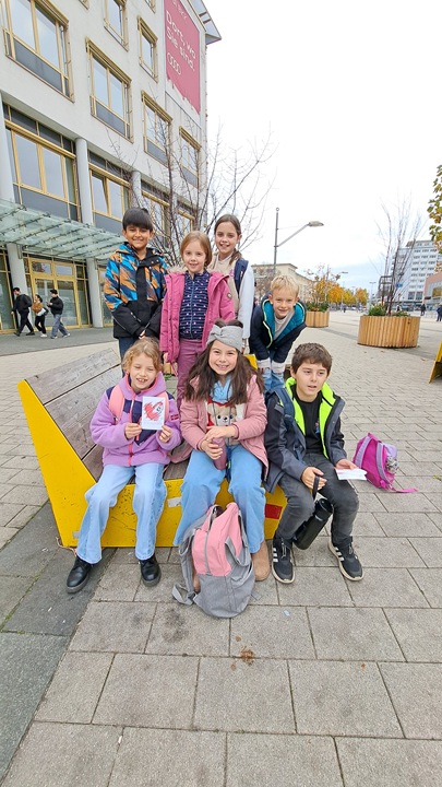 Am Dienstag, den 4.11. ist es dann soweit: 7 Kinder des Kinderparlamentes sind on tour – mit der Busline 171 geht es in die Stadt. Den von Frau Kühnitz liebevoll gestalteten Scheck über die 900€ für die Trostinsel haben wir natürlich im Gepäck.